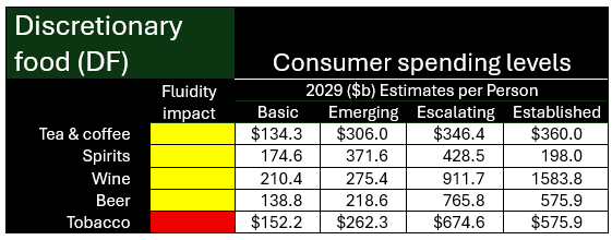 Discretionary foods, and tobacco, are not directly associated with nutrition and good health, but they have considerable value, including emotional and social value. These, too, are less dependent on wealth.